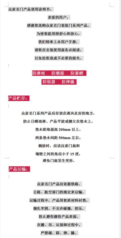 - 眾家名門產(chǎn)品使用說明書